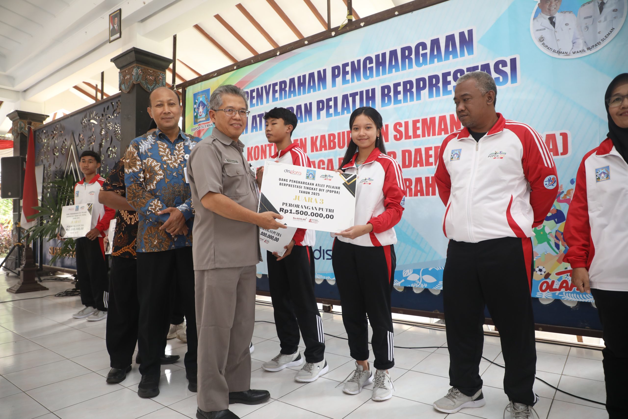 “Penyerahan penghargaan ini menunjuknna kepedulian Pemkab Sleman dalam menghargai prestasi yang diraih atlet,” katanya.