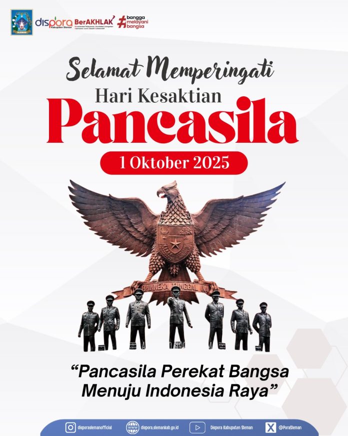 serba-serbi Selamat Memperingati Hari Kesaktian Pancasila Penulis dispora - 1 Oktober 2025 0 34 Selamat Memperingati Hari Kesaktian Pancasila Pancasila Perekat Bangsa Menuju Indonesia Raya