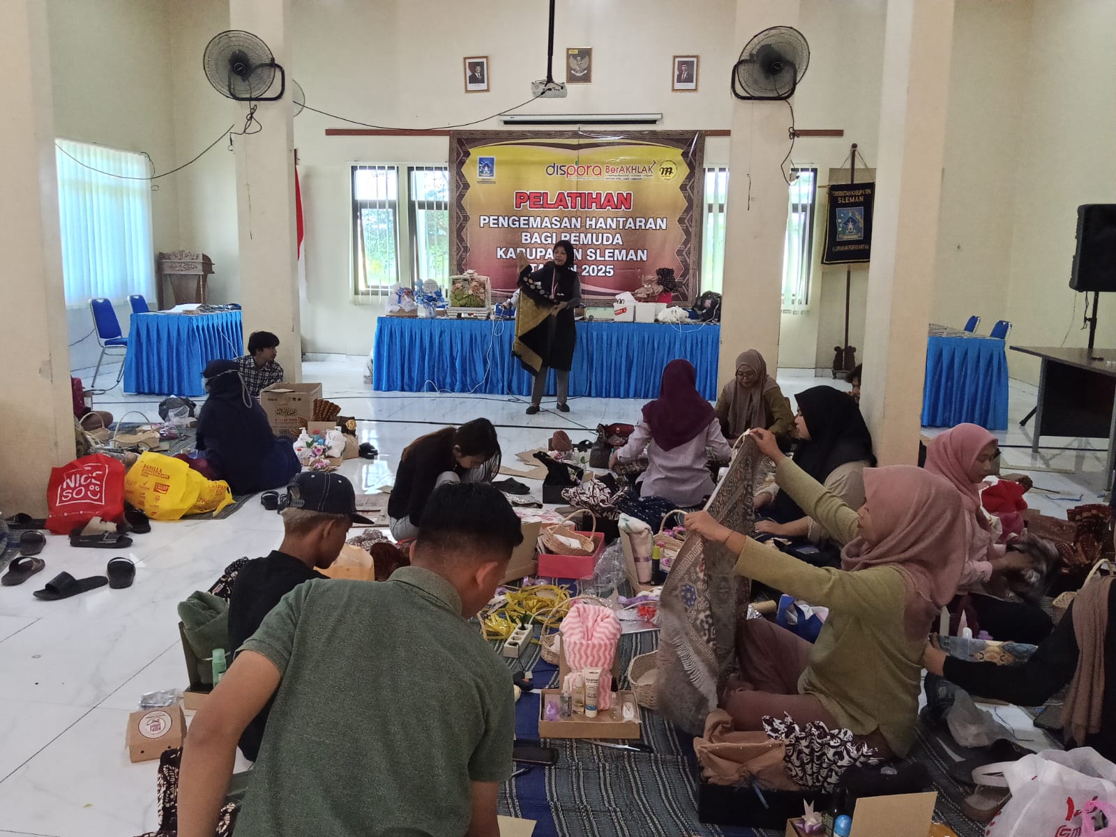 Sleman – Dinas Pemuda dan Olahraga Kabupaten Sleman menyelenggarakan kegiatan pelatihan pengemasan hantaran bagi pemuda di Kalurahan Purwomartani, Kalasan. Kegiatan yang diadakan oleh Dispora Sleman ini berlangsung selama 4 hari (6–9 Oktober 2025) di Aula Kalurahan Purwomartani.