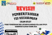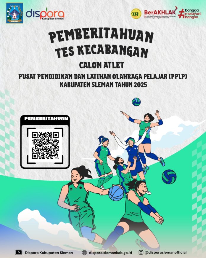 OlahragaPengumuman Pemberitahuan Tes Kecabangan Calon Atlet PPLP Kabupaten Sleman tahun 2025 Penulis dispora - 17 November 2025 0 477 Pemberitahuan Tes Kecabangan Calon Atlet PPLP Kabupaten Sleman tahun 2025 KLIK DISINI