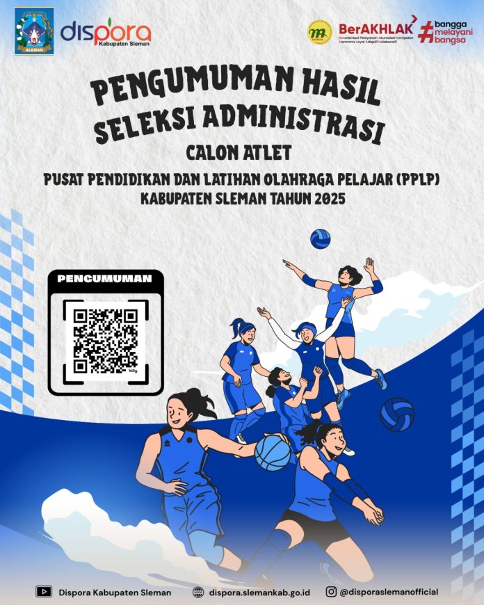 OlahragaPengumuman Pengumuman Seleksi Administrasi Calon Atlet PPLP Kabupaten Sleman tahun 2025 Penulis dispora - 17 November 2025 0 555 Pengumuman Seleksi Administrasi Calon Atlet PPLP Kabupaten Sleman tahun 2025 KLIK DISINI