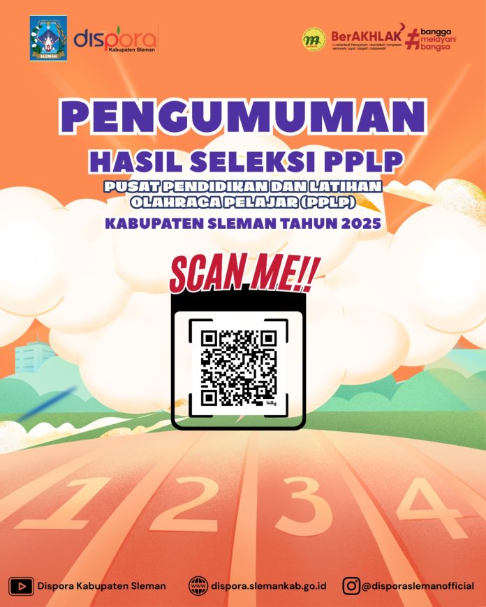 OlahragaPengumuman Pengumuman Hasil Seleksi PPLP Kabupaten Sleman tahun 2025 Penulis dispora - 25 November 2025 0 83 Pengumuman Hasil Seleksi PPLP Kabupaten Sleman tahun 2025 KLIK DISINI