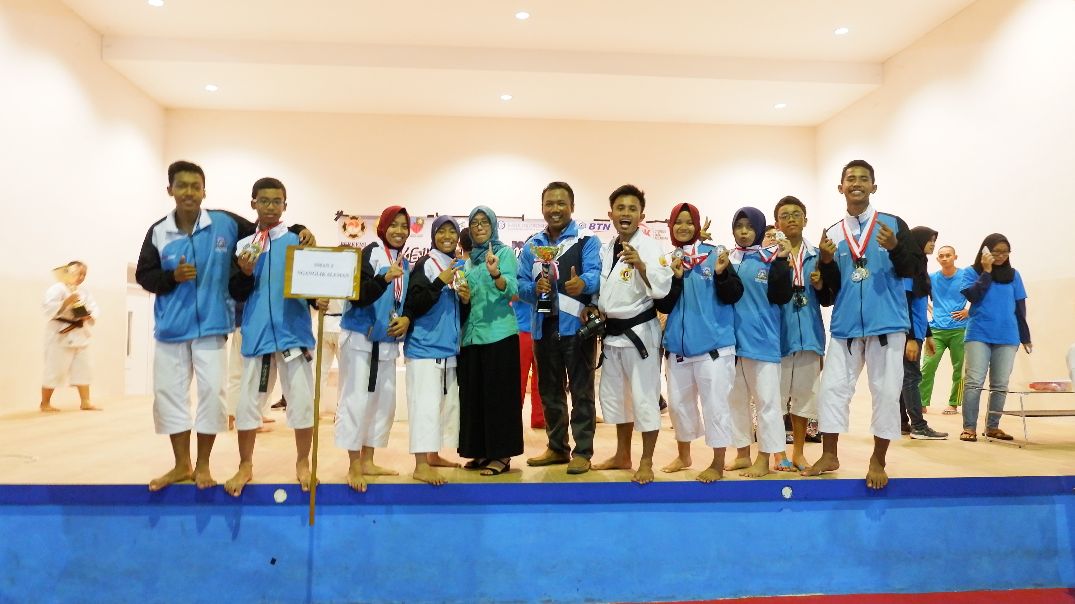 JAKARTA-Kontingen SMA Negeri 2 Ngaglik Sleman berhasil meraih Juara Umum I kategori pelajar pada Kejuaraan Shorinji Kempo UNJ 2018 Antar Pelajar & Mahasiswa Se-Indonesia yang berlangsung di GOR Merpati Halim